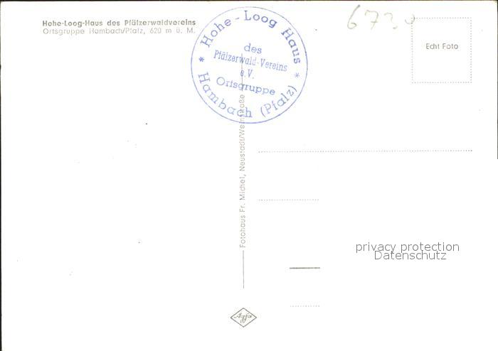 41793309 Hambach Neustadt Hohe-Loog-Haus Pfoelzerwaldvereins postalisch nicht gelaufen Erhaltung siehe scans KatCode: 11110007316000