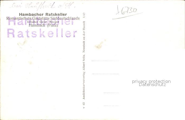 41793206 Hambach Neustadt Ratskeller postalisch nicht gelaufen Erhaltung siehe scans KatCode: 11110007316000