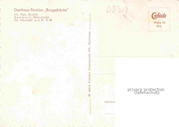 74047356 Hambach Neustadt Weinstrasse Gasthaus Pension Burgschaenke Gastraum postalisch nicht gelaufen Erhaltung siehe scans [FriedD77] KatCode: 11110007316000