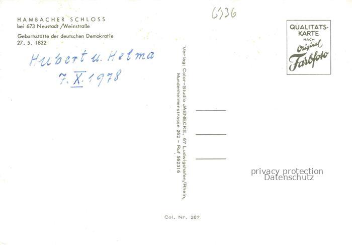 74006941 Hambach Neustadt Weinstrasse Hambacher Schloss bei Nacht postalisch nicht gelaufen Erhaltung siehe scans [WerneD78] KatCode: 11110007316000