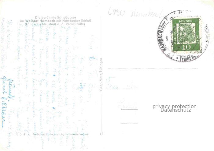 74006919 alte Postkarte Hambach Neustadt Weinstrasse Hambacher Schloss Schlossgasse postalisch gelaufen Erhaltung siehe scans [WerneD78] KatCode: 11110007316000