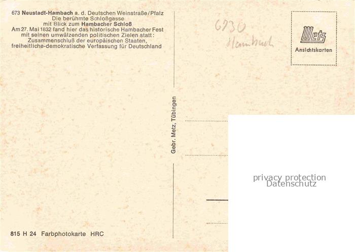 74006928 Hambach Neustadt Weinstrasse Hambacher Schloss Schlossgasse postalisch nicht gelaufen Erhaltung siehe scans [WerneD78] KatCode: 11110007316000