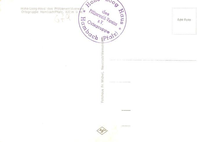 73896706 Hambach Neustadt Weinstrasse Hohe Loog Haus des Pfaelzerwaldvereins Gastraeume postalisch nicht gelaufen Erhaltung siehe scans [WerneD78] Wern Katcode 11110007316000