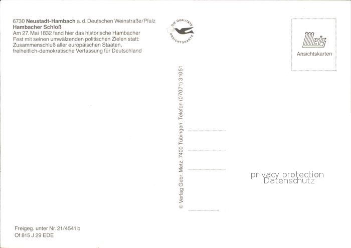 71927392 Hambach Weinstrasse Fliegeraufnahme Hambacher Schloss postalisch nicht gelaufen Erhaltung siehe scans KatCode: 11110007316000