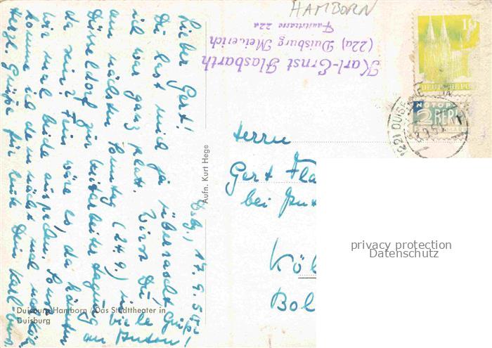 74153552 alte Postkarte HAMBORN DUISBURG NRW Stadttheater postalisch gelaufen Erhaltung siehe scans [FriedD77] KatCode: 11110005112000