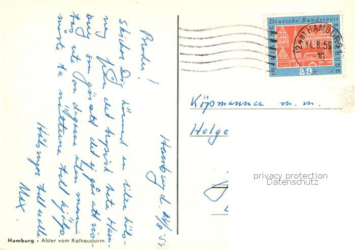 72967667 alte Postkarte Hamburg Alster postalisch gelaufen Erhaltung siehe scans [NatalD47] KatCode: 11110002000000