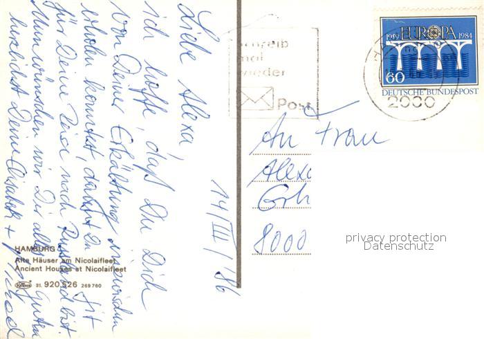 73249018 alte Postkarte Hamburg Alte Haeuser am Nicolaifleet postalisch gelaufen Erhaltung siehe scans [FriedD77] KatCode: 11110002000000