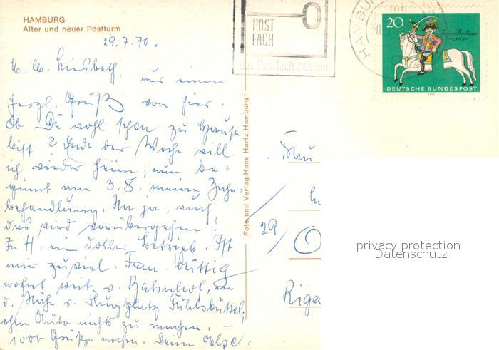 73043568 alte Postkarte Hamburg Alter und neuer Postturm postalisch gelaufen Erhaltung siehe scans [FriedD77] KatCode: 11110002000000