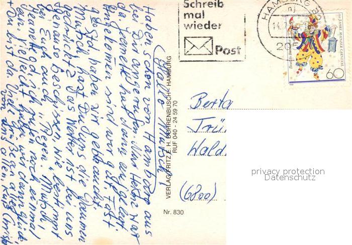 73217268 alte Postkarte Hamburg Altonaer Fischmarkt postalisch gelaufen Erhaltung siehe scans [FriedD77] KatCode: 11110002000000