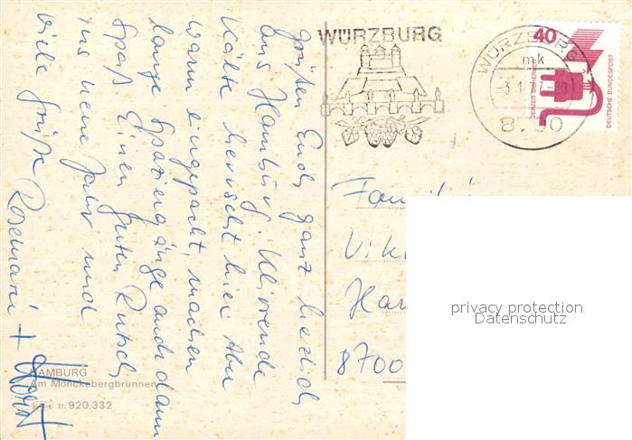 73060073 alte Postkarte Hamburg Am Moenckebergbrunnen postalisch gelaufen Erhaltung siehe scans [FriedD77] KatCode: 11110002000000