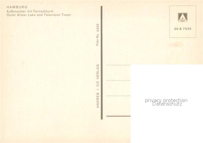 73082515 Hamburg Aussenalster Fernsehturm postalisch nicht gelaufen Erhaltung siehe scans [KathaD81] KatCode: 11110002000000