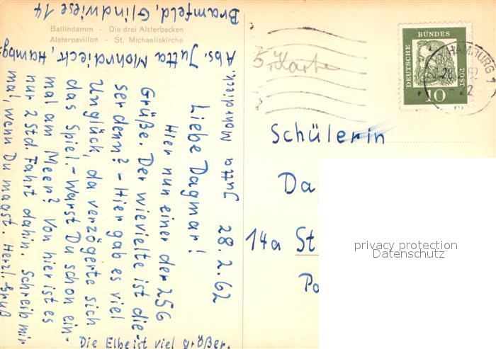 72974884 alte Postkarte Hamburg Ballindamm drei Alsterbecken postalisch gelaufen Erhaltung siehe scans [LiesaD40] KatCode: 11110002000000