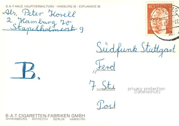 73543050 alte Postkarte Hamburg BAT Haus Hauptverwaltungs Hochhaus postalisch gelaufen Erhaltung siehe scans [FriedD77] KatCode: 11110002000000