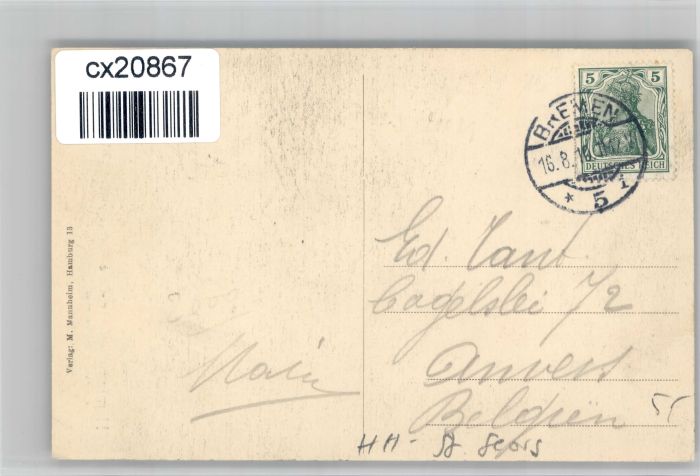 30738483 alte Postkarte Hamburg Bieber Cafe postalisch gelaufen KatCode: 11110002000000