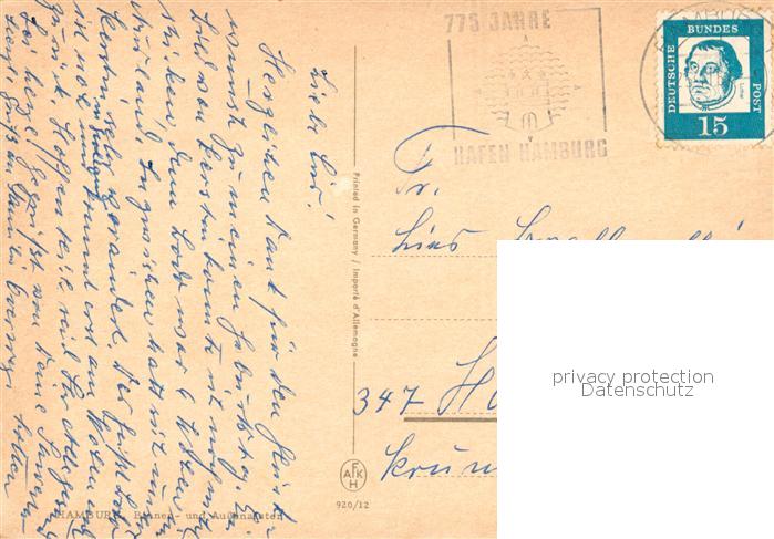 73048320 alte Postkarte Hamburg Binnen und Aussenalster Fliegeraufnahme postalisch gelaufen Erhaltung siehe scans [WerneD78] KatCode: 11110002000000