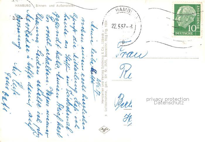 73209356 alte Postkarte Hamburg Binnenalster Aussenalster Fliegeraufnahme postalisch gelaufen Erhaltung siehe scans [FriedD77] KatCode: 11110002000000