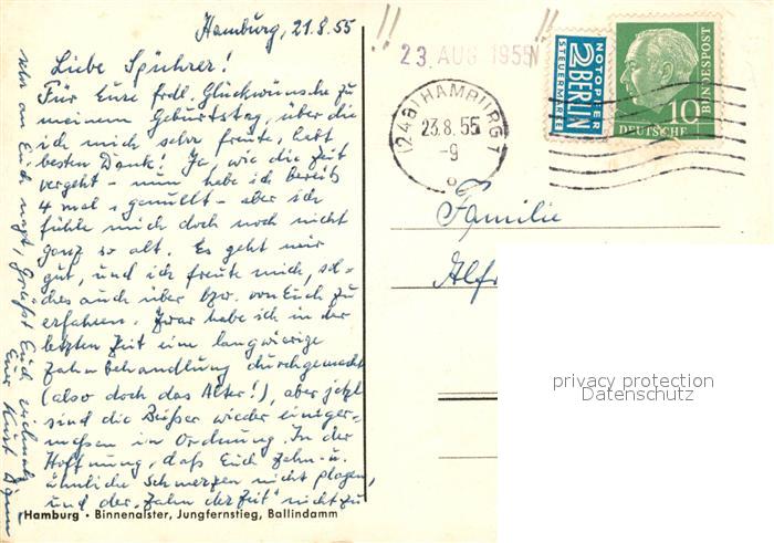 73167690 alte Postkarte Hamburg Binnenalster Jungfernstieg Ballindamm postalisch gelaufen Erhaltung siehe scans [FriedD77] KatCode: 11110002000000