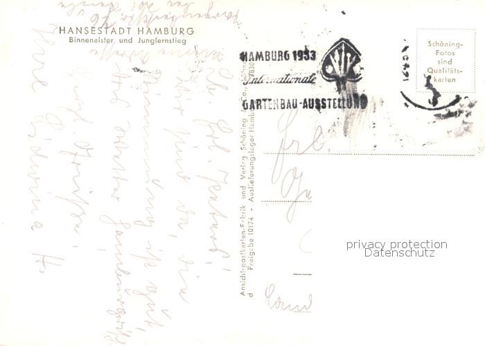 73037939 alte Postkarte Hamburg Binnenalster Jungfernstieg postalisch gelaufen Erhaltung siehe scans [KathaD81] KatCode: 11110002000000