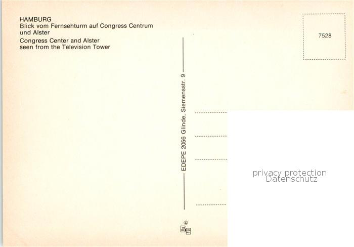 73621807 Hamburg Blick vom Fernsehturm auf Congress-Centrum und Alster postalisch nicht gelaufen Erhaltung siehe scans [LiesaD40] KatCode: 11110002000000