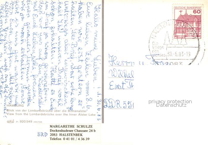 73070888 alte Postkarte Hamburg Blick von der Lombardsbruecke ueber die Binnenalster Nachtaufnahme postalisch gelaufen Erhaltung siehe scans [FriedD77] KatCode: 11110002000000