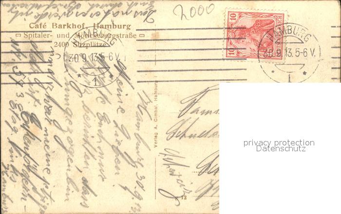 31840557 alte Postkarte Hamburg Cafe Barkhof postalisch gelaufen KatCode: 11110002000000