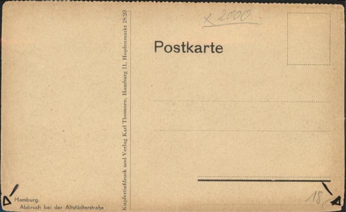 41055243 HAMBURG CITY Abbruch bei der Altstaedterstrasse postalisch nicht gelaufen Alte Ansichtskarte Postkarte Ulri Katcode 11110002000000