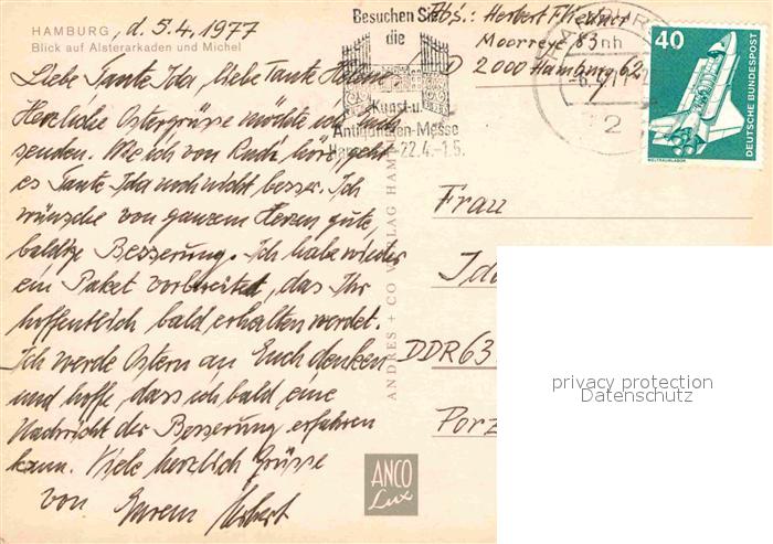 72628550 alte Postkarte HAMBURG CITY Alsterarkaden und Michel postalisch gelaufen Erhaltung siehe scans [WerneD78] KatCode: 11110002000000