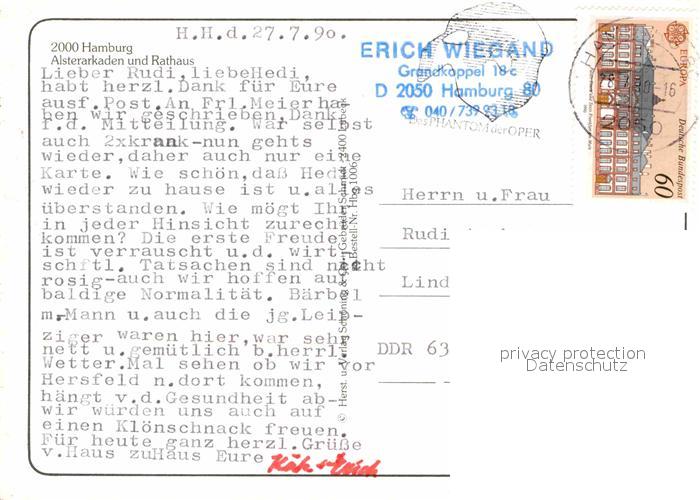 72628481 alte Postkarte HAMBURG CITY Alsterarkaden und Rathaus postalisch gelaufen Erhaltung siehe scans [WerneD78] KatCode: 11110002000000