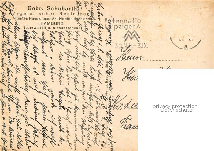 33118678 alte Postkarte HAMBURG CITY Alsterarkaden Vegetarisches Restaurant postalisch gelaufen Erhaltung siehe scans [PaolaD17] KatCode: 11110002000000