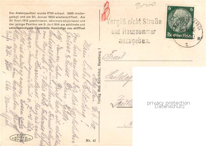 43367566 HAMBURG CITY Alsterpavillon postalisch gelaufen Erhaltung siehe scans [FriedD77] alte Postkarte Frie Katcode 11110002000000