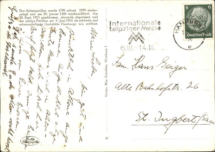41080702 HAMBURG CITY Alsterpavillon postalisch gelaufen Alte Ansichtskarte Postkarte alte Postkarte Elvi Katcode 11110002000000