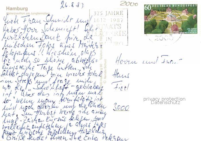 72909407 alte Postkarte HAMBURG CITY Alsterpavillon am Jungfernstieg postalisch gelaufen Erhaltung siehe scans [LiesaD40] KatCode: 11110002000000