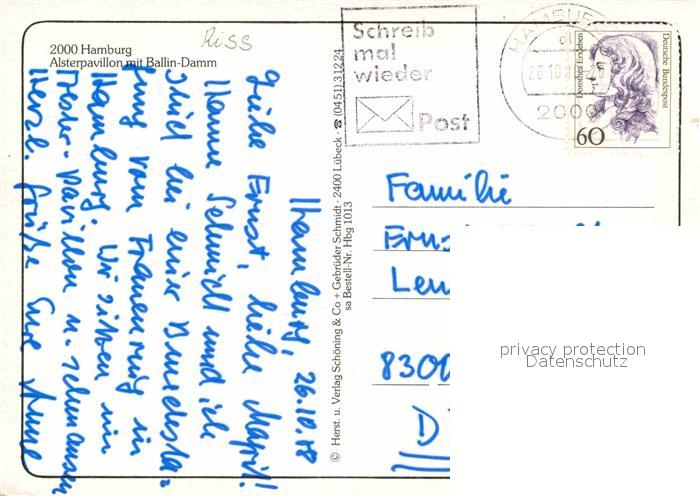 72866735 alte Postkarte HAMBURG CITY Alsterpavillon Ballin-Damm postalisch gelaufen Erhaltung siehe scans [NatalD47] KatCode: 11110002000000