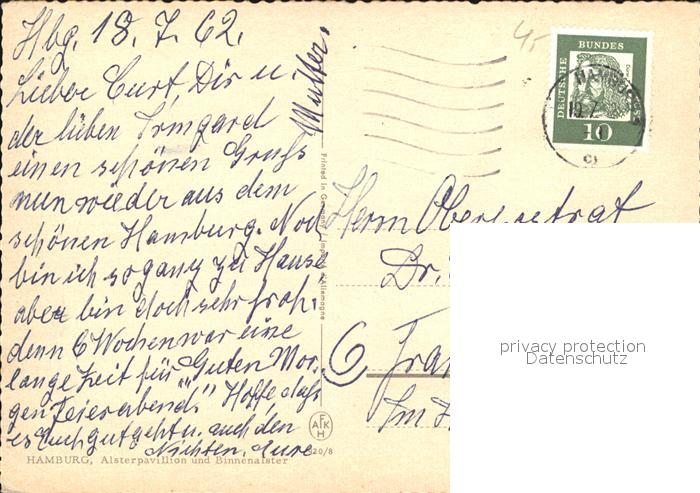 72602577 alte Postkarte HAMBURG CITY Alsterpavillon Binnenalster postalisch gelaufen Erhaltung siehe scans [AntonD74] KatCode: 11110002000000
