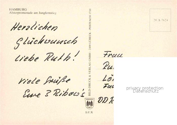 72625721 HAMBURG CITY Alsterpromenade am Jungfernstieg postalisch nicht gelaufen Erhaltung siehe scans [FriedD77] KatCode: 11110002000000