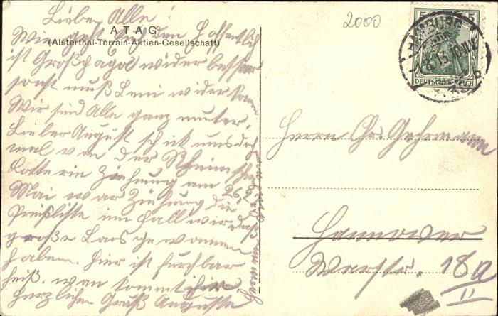 41215653 HAMBURG CITY Alstertal-Terrain-Aktien-Gesellschat postalisch gelaufen gute Erhaltung Alte Ansichtskarte Postkarte alte Postkarte hz_U Katcode 11110002000000