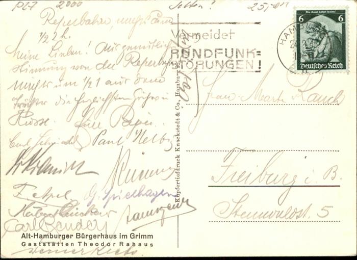 41043682 HAMBURG CITY Alt Buergerhaus im Grimm Theodor Rahaus postalisch gelaufen Alte Ansichtskarte Postkarte alte Postkarte Stef Katcode 11110002000000