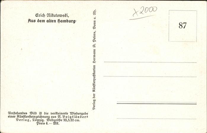 41207517 HAMBURG CITY Alt-Hamburg Kuenstlerkarte postalisch nicht gelaufen gute Erhaltung Alte Ansichtskarte Postkarte hz_C Katcode 11110002000000