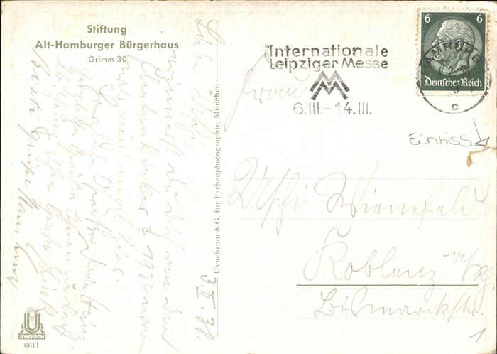 41215726 HAMBURG CITY Alt-Hamburger Buergerhaus postalisch gelaufen Erhaltung mit Maengel Alte Ansichtskarte Postkarte alte Postkarte hz_U Katcode 11110002000000