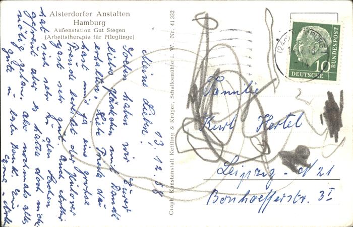 41195117 HAMBURG CITY Altserdorfer Anstalten Gut Stegen postalisch gelaufen Alte Ansichtskarte Postkarte alte Postkarte Stef Katcode 11110002000000