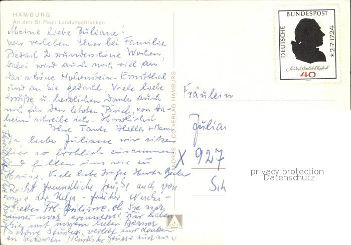 72423545 alte Postkarte HAMBURG CITY An den St Pauli Landungsbruecken postalisch gelaufen Erhaltung siehe scans KatCode: 11110002000000