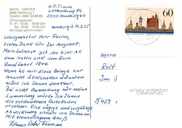 72863452 alte Postkarte HAMBURG CITY Antic-Center postalisch gelaufen Erhaltung siehe scans [NatalD47] KatCode: 11110002000000
