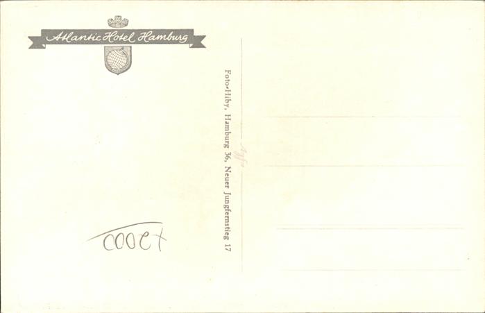 41207274 HAMBURG CITY Atlantic Hotel postalisch nicht gelaufen gute Erhaltung Alte Ansichtskarte Postkarte hz_C Katcode 11110002000000