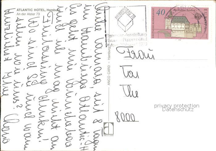 72296418 alte Postkarte HAMBURG CITY Atlantic Hotel Alster Segeln postalisch gelaufen Erhaltung siehe scans KatCode: 11110002000000
