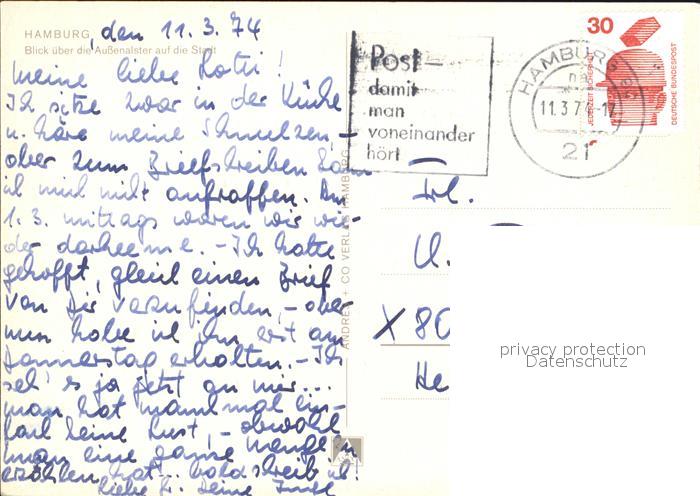 72541144 alte Postkarte HAMBURG CITY Aussenalster postalisch gelaufen Erhaltung siehe scans [LiesaD40 kt122box] KatCode: 11110002000000