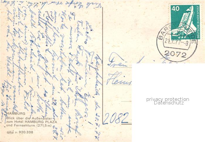 72943218 alte Postkarte HAMBURG CITY Aussenalster Hotel Hamburg Plaza Fernsehturm Nacht postalisch gelaufen Erhaltung siehe scans [KathaD81] KatCode: 11110002000000