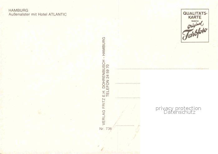 72697416 HAMBURG CITY Aussenalster mit Hotel Atlantic postalisch nicht gelaufen Erhaltung siehe scans [WerneD78] KatCode: 11110002000000