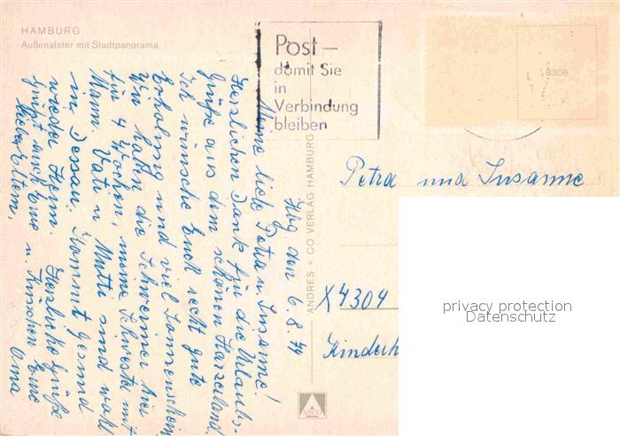 72699514 alte Postkarte HAMBURG CITY Aussenalster mit Stadtpanorama postalisch gelaufen Erhaltung siehe scans [WerneD78] KatCode: 11110002000000