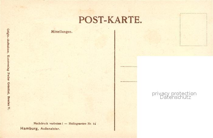 43366903 HAMBURG CITY Aussenalster Schwaene Heliogravuere Nr 14 postalisch nicht gelaufen Erhaltung siehe scans [FriedD77] Frie Katcode 11110002000000