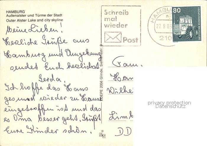 72567610 alte Postkarte HAMBURG CITY Aussenalster und Tuerme postalisch gelaufen Erhaltung siehe scans [LiesaD40] KatCode: 11110002000000